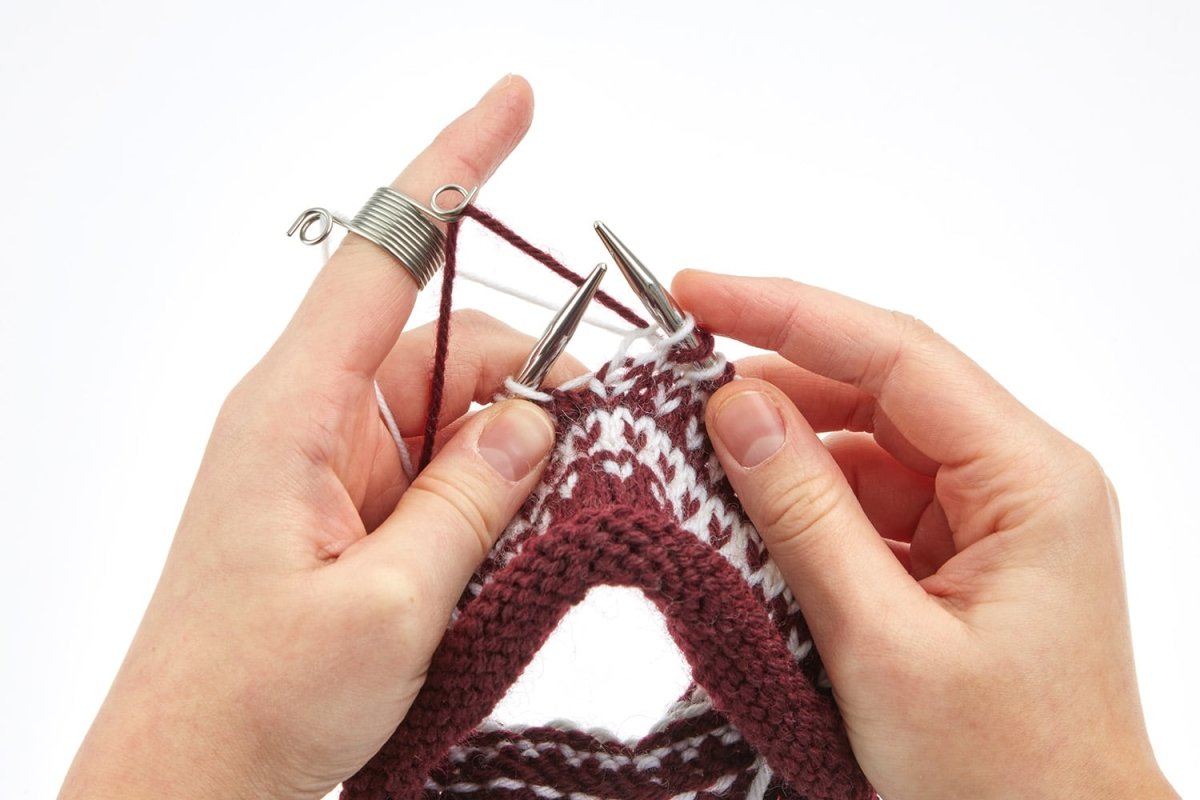 Multiple colours on one finger. Knitting with multiple threads is made a lot easier with this finger ring. Made from genuine Sauerland spring steel.