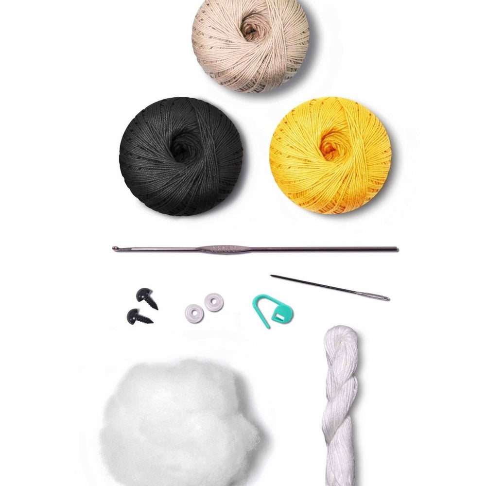Dieses Set enthält hochwertiges Circulo Amigurumi-Garn aus 100 % Baumwolle, das dafür sorgt, dass Ihre fertige Biene weich, haltbar und perfekt zum Kuscheln ist. Das Baumwollgarn hat eine glatte Textur, die die Verarbeitung erleichtert und saubere, gleichmäßige Stiche ermöglicht, die die feinen Details des Bienenmusters hervorheben. Das Garn ist in leuchtenden Farben erhältlich, die das Aussehen einer Hummel perfekt einfangen, darunter leuchtendes Gelb, tiefes Schwarz und Weiß für die Flügel. Die lebendige Farbpalette sorgt dafür, dass Ihr fertiges Projekt ein Hingucker und Spaß macht.