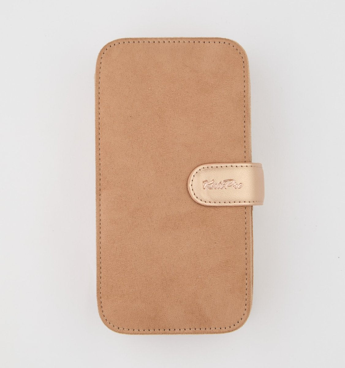 Tutti gli uncinetti e gli accessori sono riposti in un astuccio premium in finta pelle scamosciata beige (clay), che li mantiene protetti e facilmente accessibili.