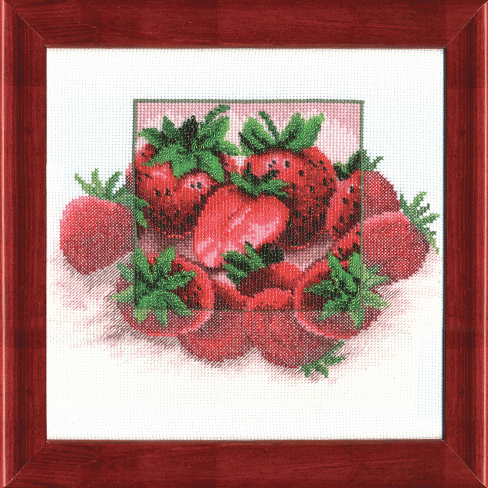 PARADISO DELLA FRAGOLA, Kit punto croce, Kit perline, Tecnica mista, Aida a 14 conteggi, misura 23 x 23 cm, Charivna mit | Momentos Magicos (M-65)